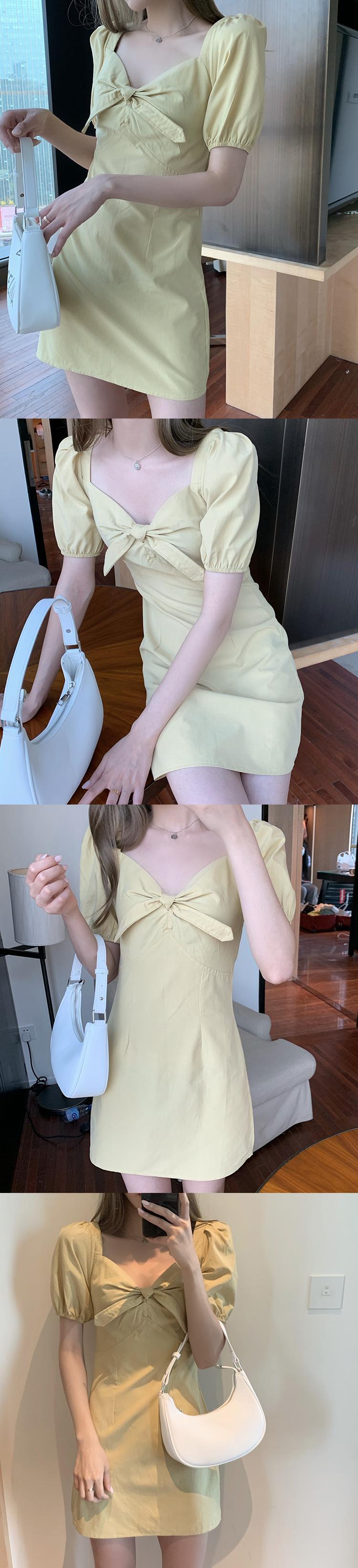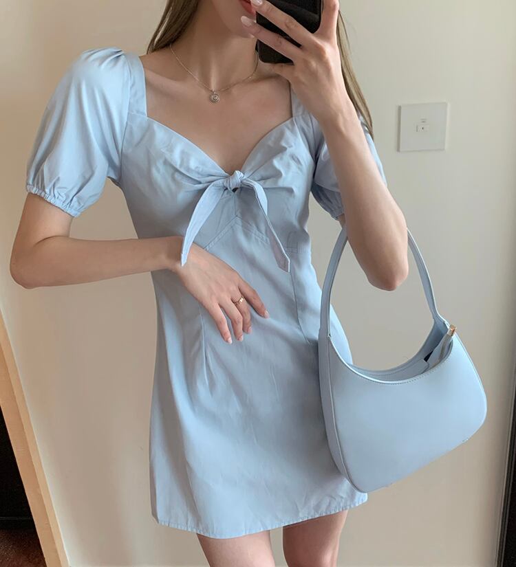 ドレス サマーショートスタイル半袖スリーブ レース ハーフスリーブ 夏物 レースアップ スクウェア ビッグFスモールZ韓国14289698982
