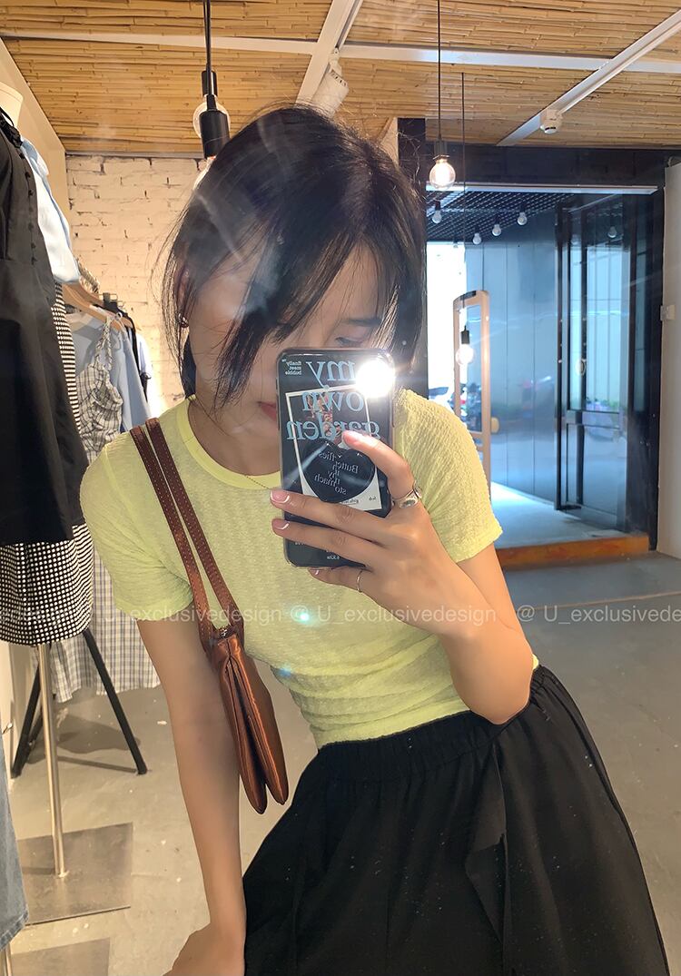 スリム薄手ホルターTシャツ サマーソリッド カラーラウンドネックトップス 夏物 Oネック ソリッドカラー ビッグFスモールZ韓国539438844