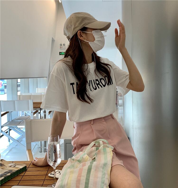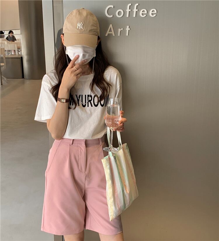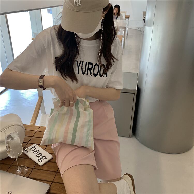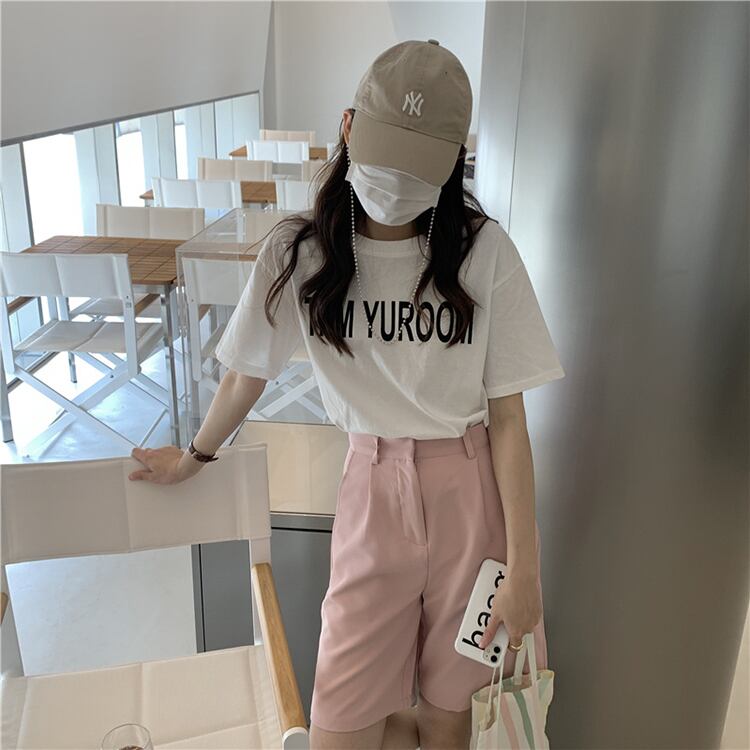 ラウンドネックTシャツ ショーツ サマールーズカジュアルパンツ 夏物 ブルマー Oネック ビッグFスモールZ韓国25244713502