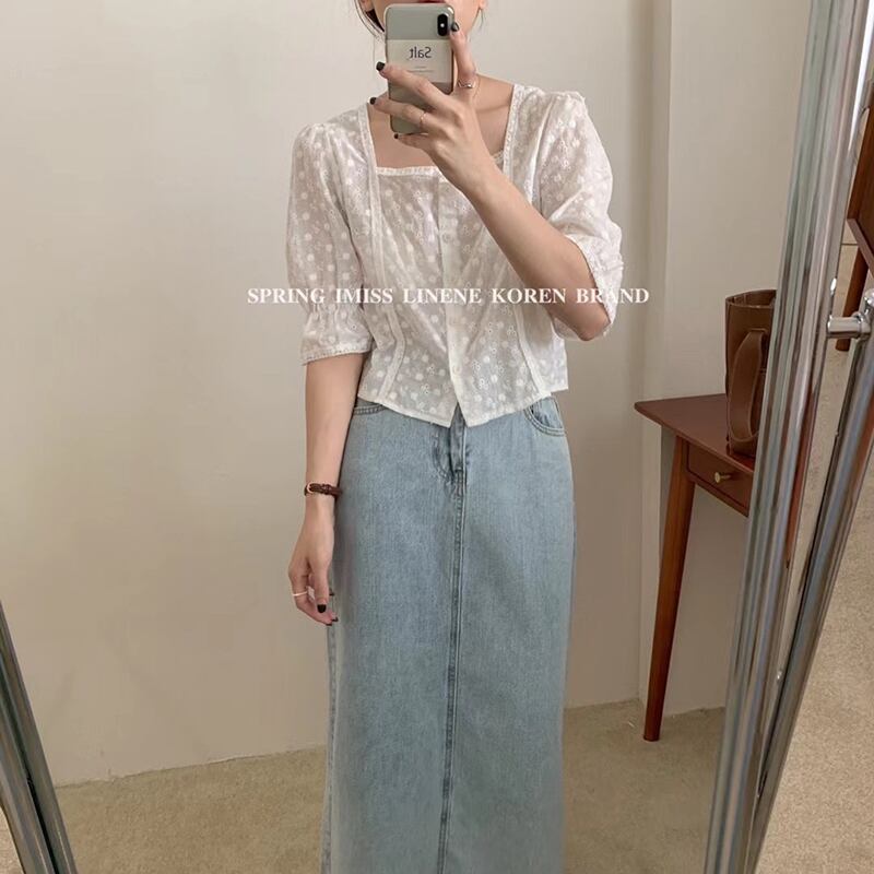 トップス サマールーズ薄手カラースリーブシャツ 夏物 スクウェア ビッグFスモールZ韓国96664313777