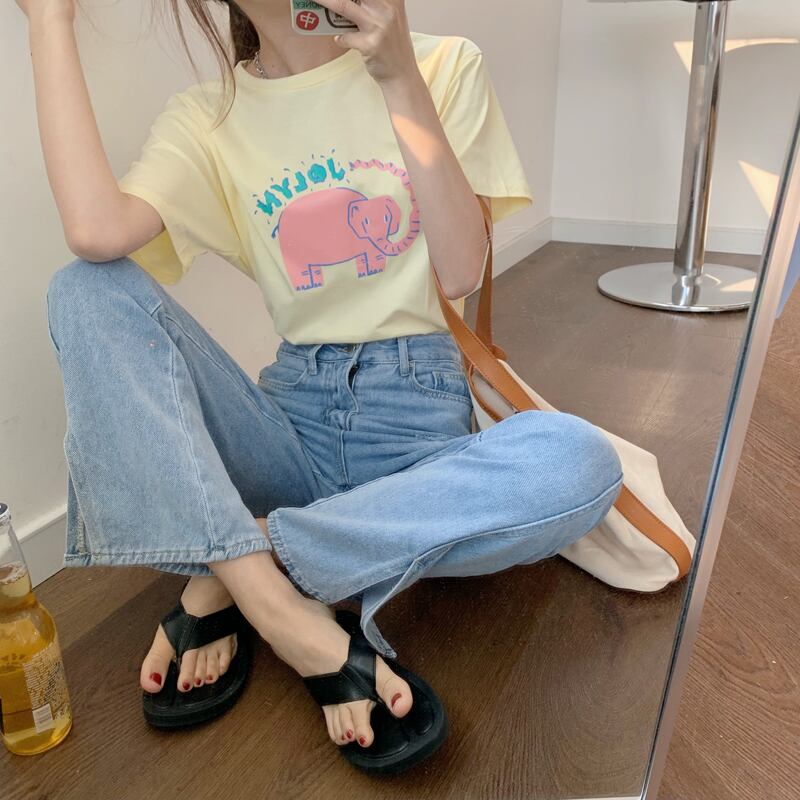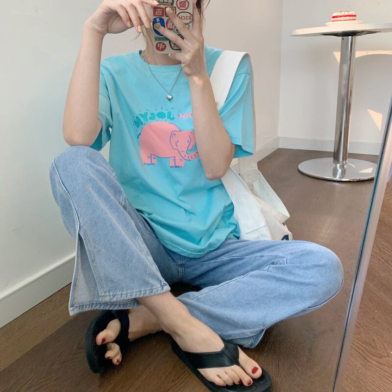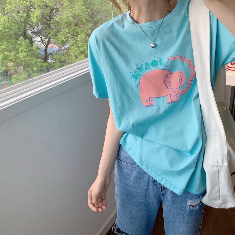 プリントTシャツ シャツ サマールーズ薄手ラウンドネックプルオーバー 夏物 Oネック ビッグFスモールZ韓国68824561082