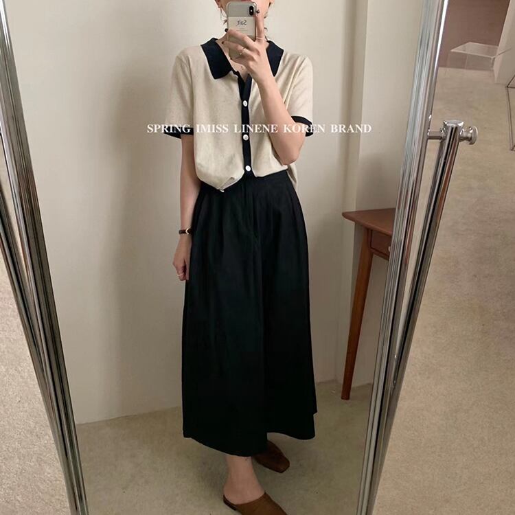 ブラックスカート サマーウェスト薄手プリーツAライン 夏物 ビッグFスモールZ韓国38792390709