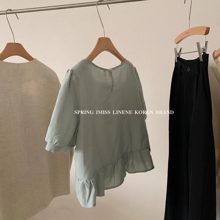 スリーブトップス サマースタイルルーズ薄手半袖シャツ ショート ピンク ハーフスリーブ 夏物 ビッグFスモールZ韓国94891341197