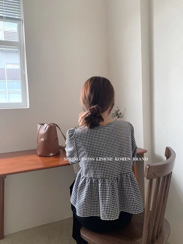 ウェストトップス サマーショートスリムハートカラー格子柄半袖スリーブシャツ ハーフスリーブ 夏物 ビッグFスモールZ韓国39651599218