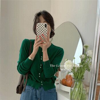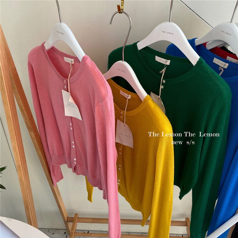 スプリングサマーカラーレースボタンセーター カーディガンシャツ 春物 夏物 会社 学校 通勤や通学にも ビッグFスモールZ韓国4561991765