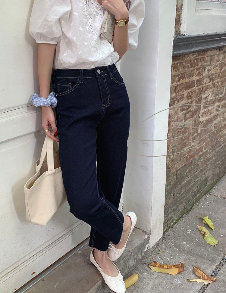 ダークブルージーンズ サマーパンツ ハイウェスト 夏物 ビッグFスモールZ韓国6996228324