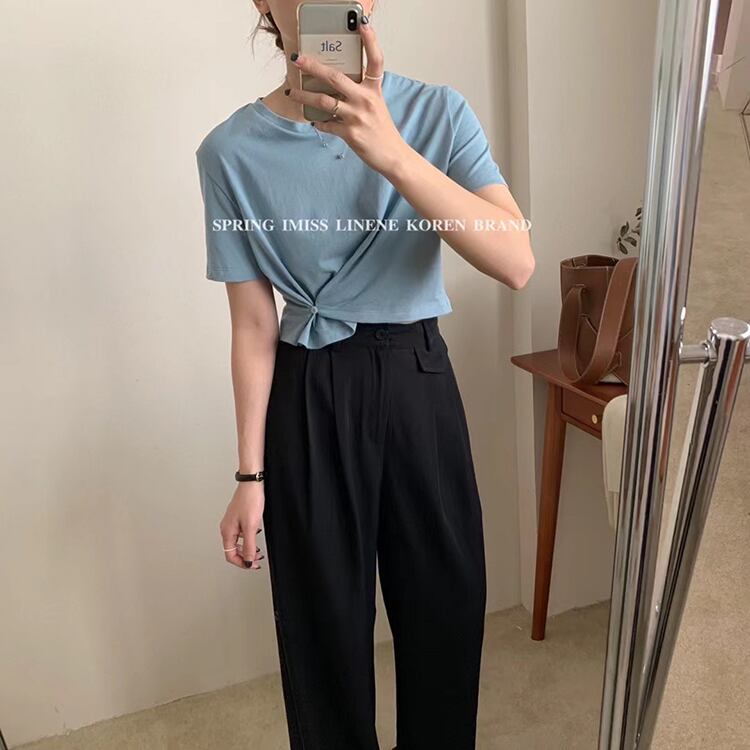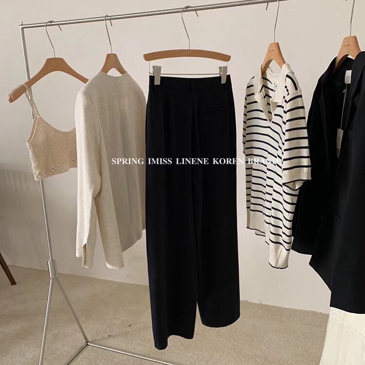 ブラックワイドレッグパンツ サマーウェスト薄手ルーズ 夏物 ワイドパンツ ビッグFスモールZ韓国35573314130