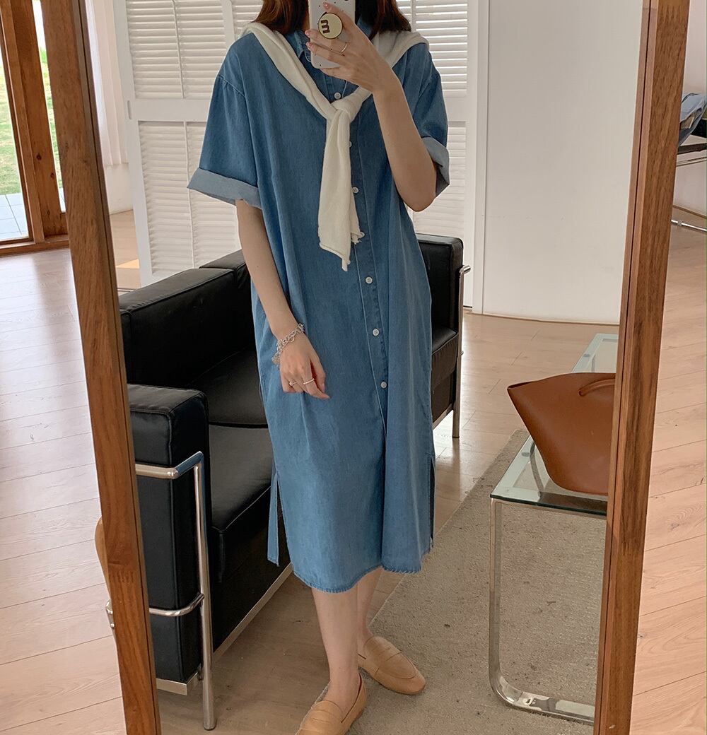 ドレス サマーカジュアルルーズ薄手ロングシャツ スカート 夏物 ビッグFスモールZ韓国6060244172