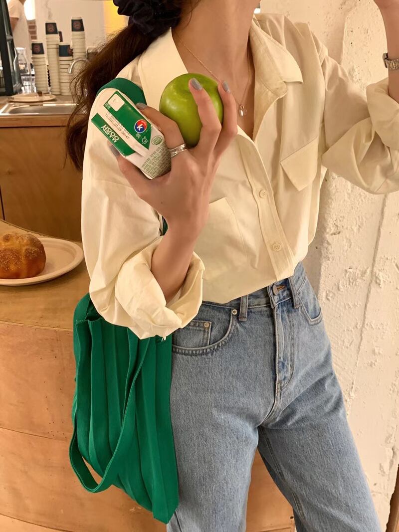 カラーポケットシャツ トップス ロング コットン ビッグFスモールZ韓国48418157145