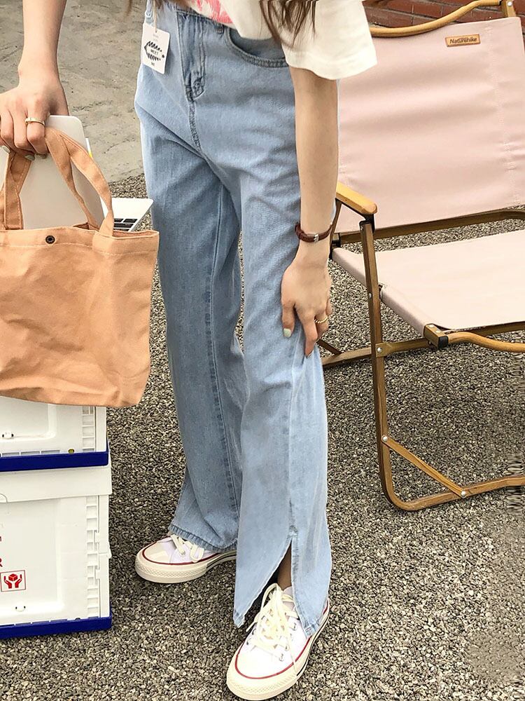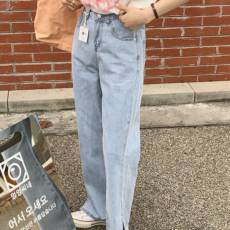 カラージーンズ サマー薄手ウェストスリムワイドレッグパンツ 夏物 ワイドパンツ ビッグFスモールZ韓国36539434970
