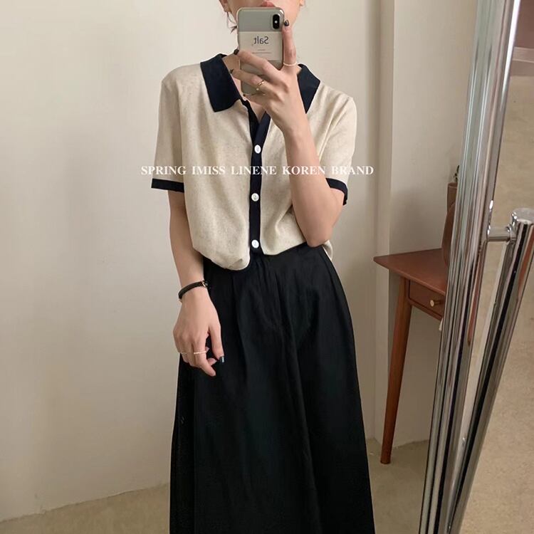 ニットカラーシャツ サマー薄手半袖スリーブカーディガントップス ショート ハーフスリーブ 夏物 ビッグFスモールZ韓国91741765194
