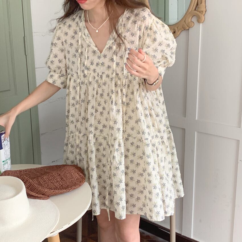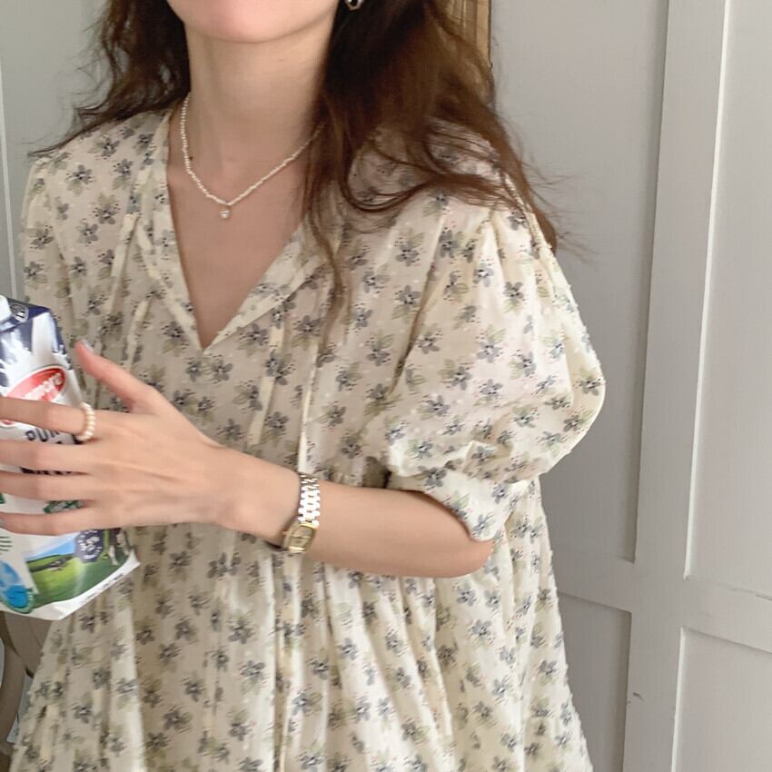 スカート サマールーズスリーブフローラル 夏物 花柄 ビッグFスモールZ韓国66864561716