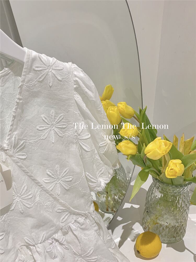 スリーブトップス サマールーズ薄手半袖Vネックプリーツウェスト刺繍ホワイトシャツ ショート ハーフスリーブ 夏物 ビッグFスモールZ韓国20566473037