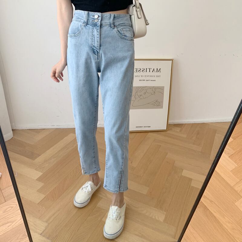 スリットジーンズ サマーハイウェストウェストブルーパンツ 夏物 ビッグFスモールZ韓国26571063693