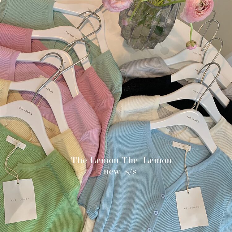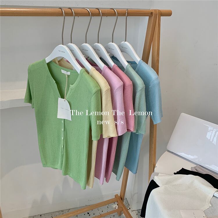 カーディガン半袖スリーブTシャツ サマー薄手ニットトップス ショート ハーフスリーブ 夏物 ビッグFスモールZ韓国5397718199