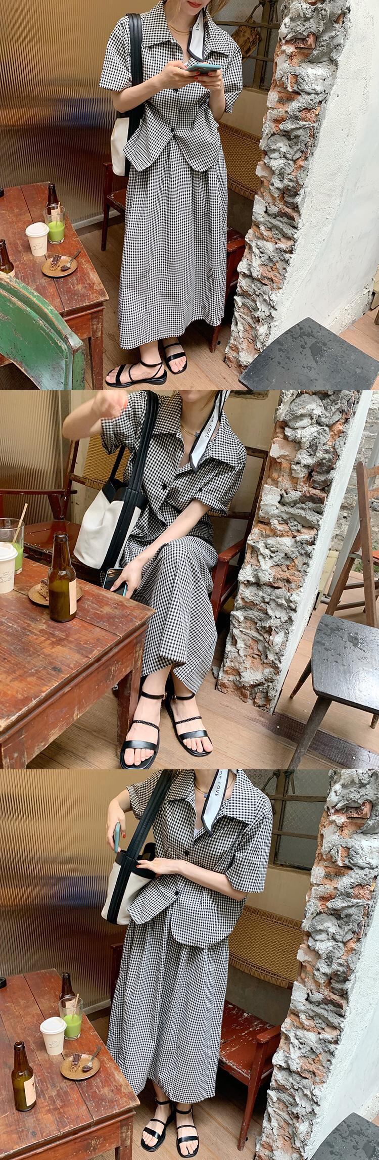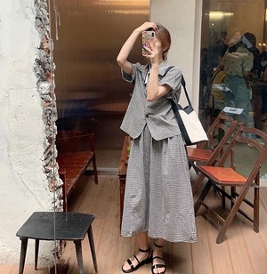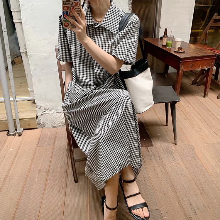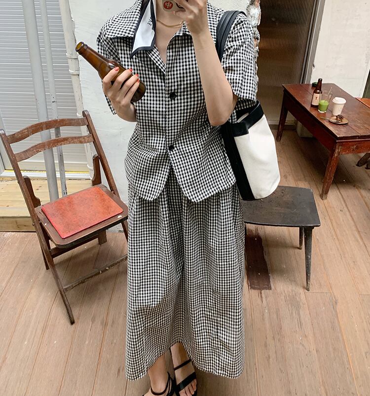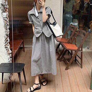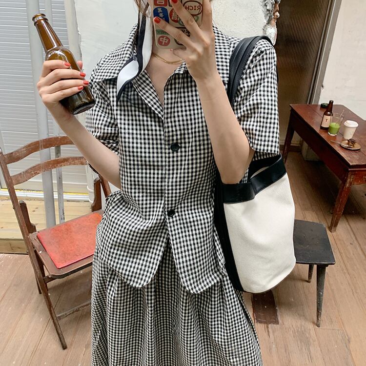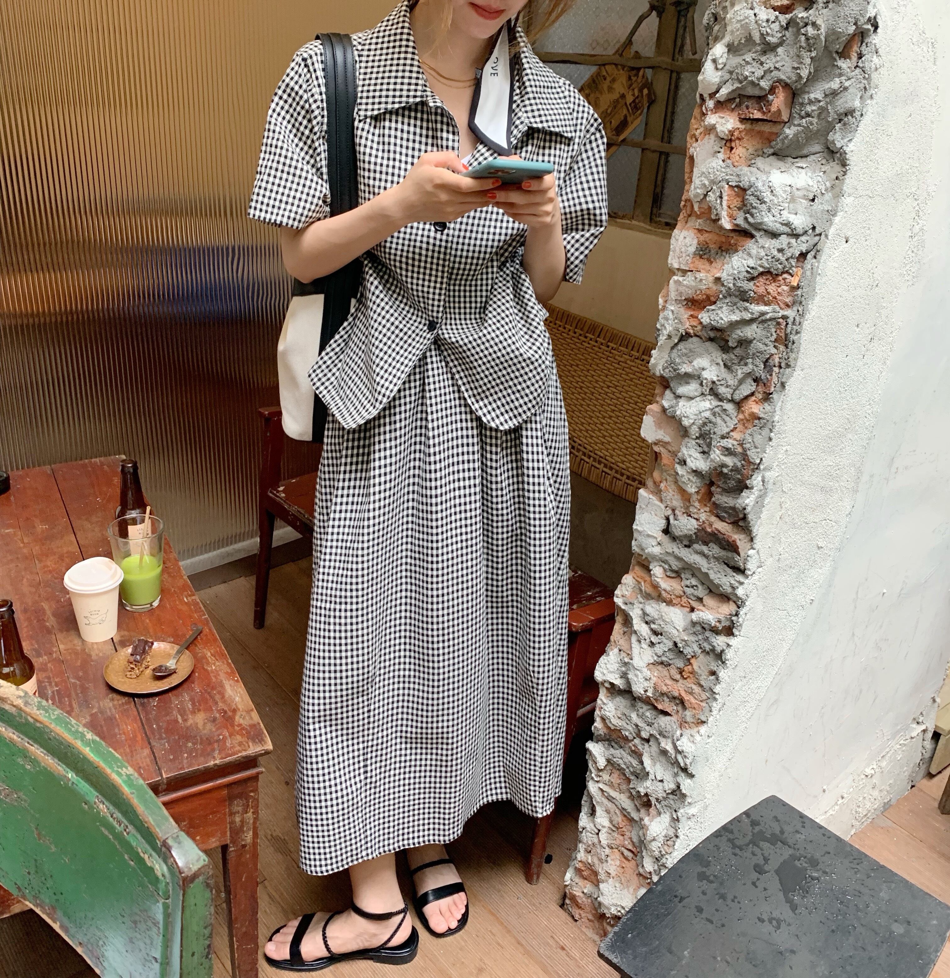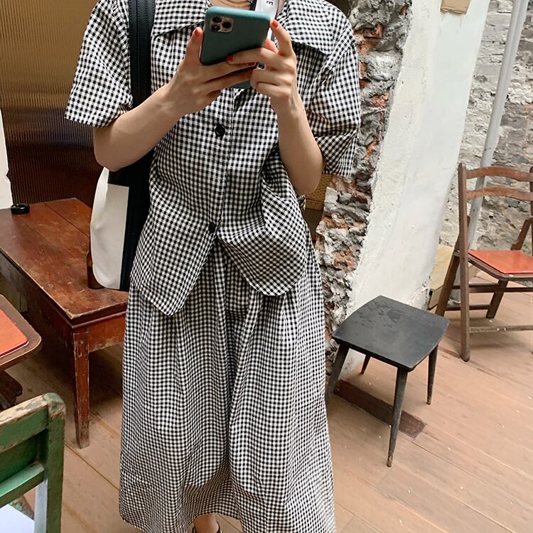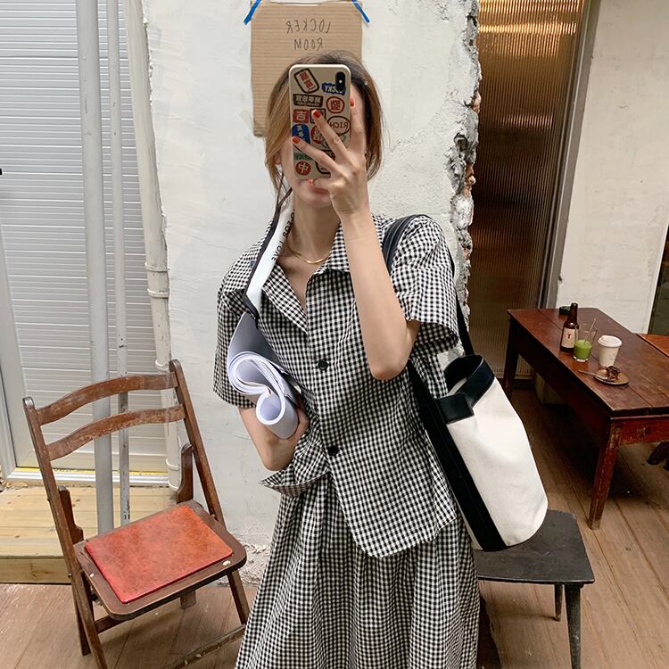 格子柄シャツ スカート サマーカジュアルルーズ 夏物 ビッグFスモールZ韓国35053887105