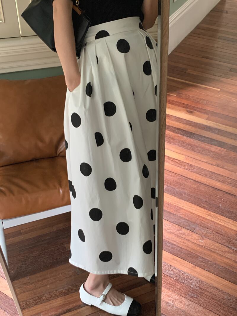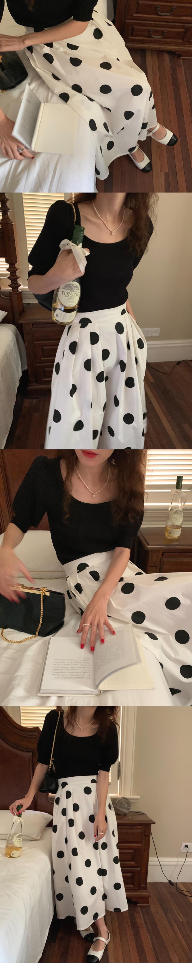スリムブラックセーター カラースタンダード水玉スカート Aライン レトロ スクウェア ビッグFスモールZ韓国16976306508