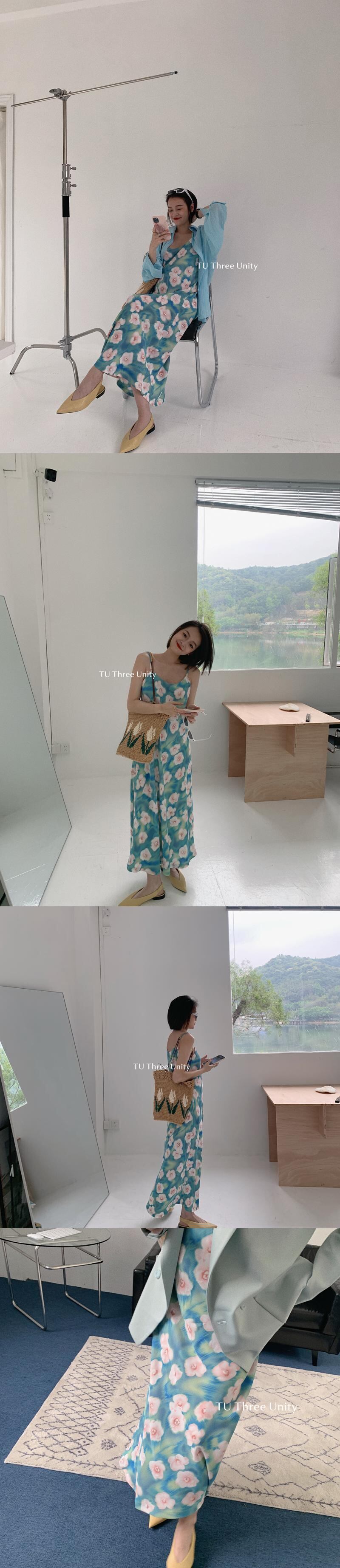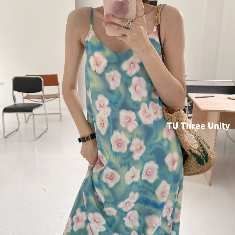 スタンダードFlowerデザイン スカート シングル薄手ドレス ロング レトロ フラワーデザイン ビッグFスモールZ韓国53591683191