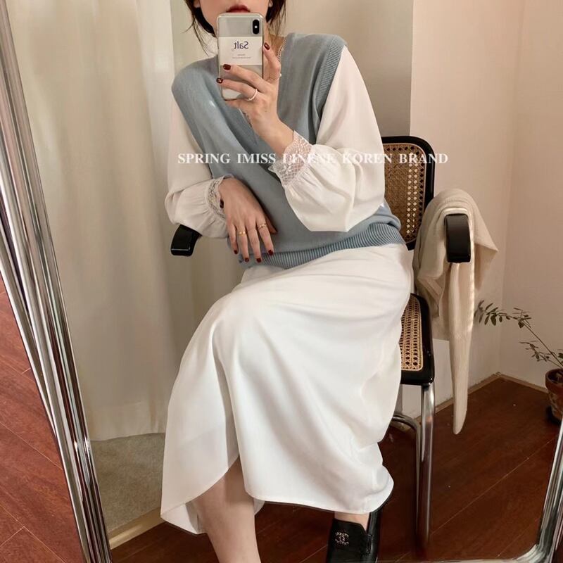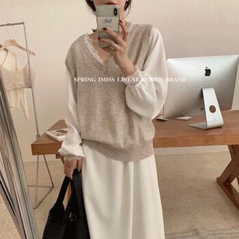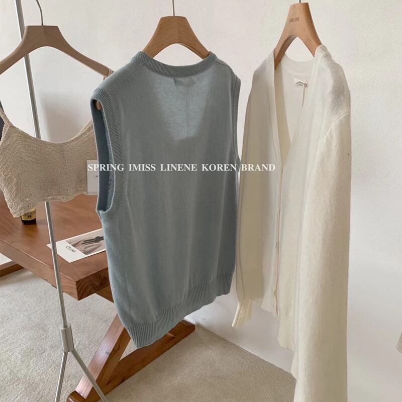 スプリングVネックソリッド カラーノースリーブニットトップス レディース 春物 ソリッドカラー ビッグFスモールZ韓国75572924246