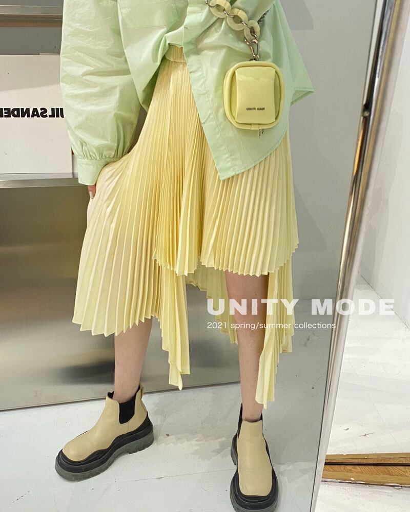 プリーツスカート スタンダードハイウェストウェスト薄手Aライン レトロ ビッグFスモールZ韓国99568689581