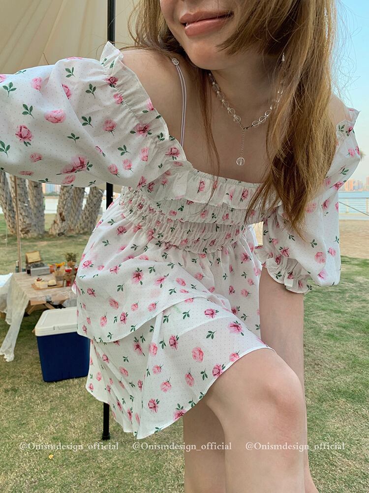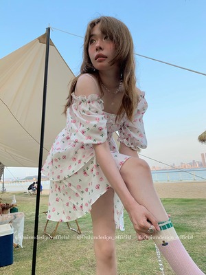 フローラルドレス サマースタイルストレッチウェストAラインスカート エラスティック 伸縮 夏物 花柄 ビッグFスモールZ韓国70644477942