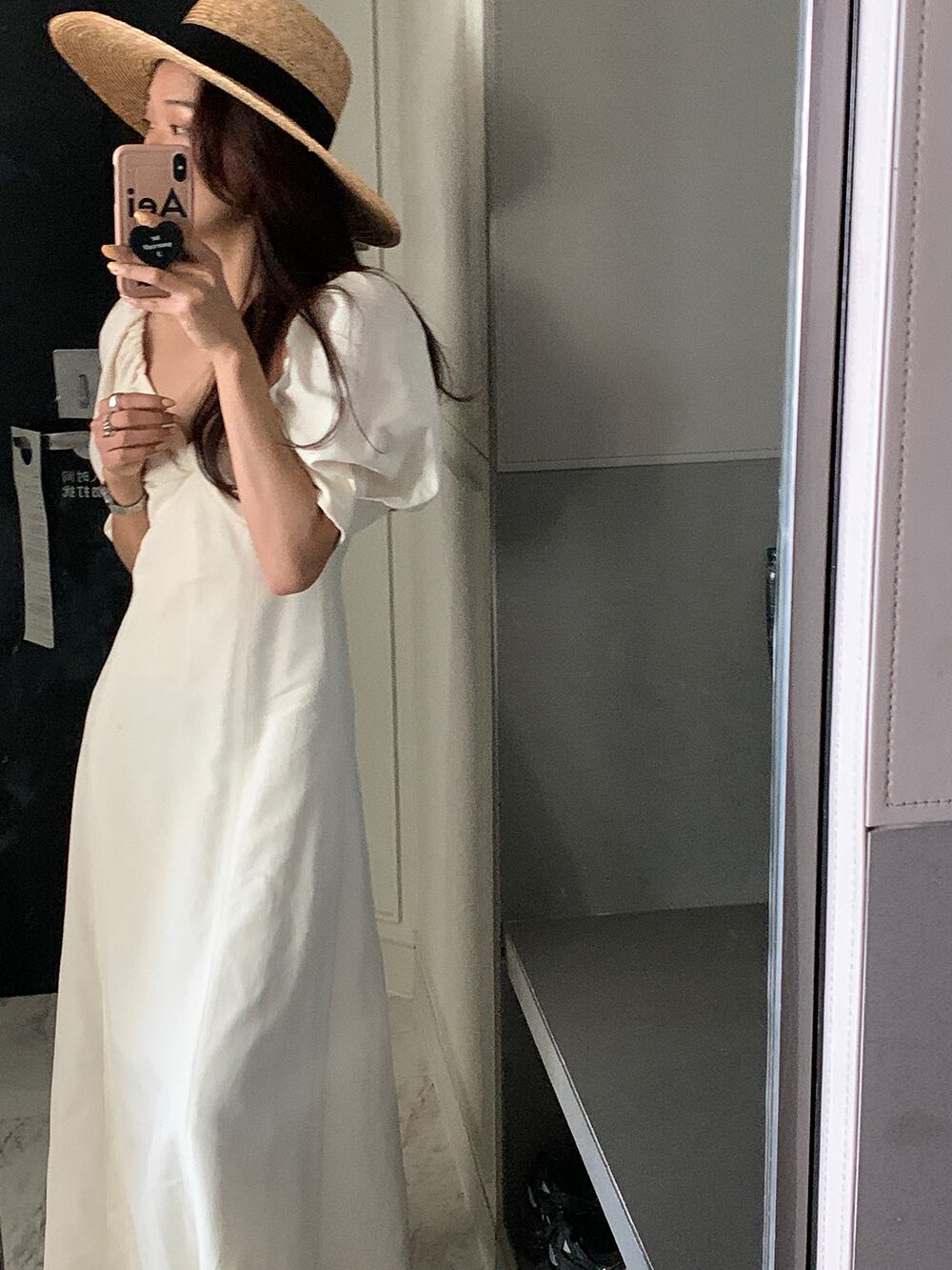 スタンダードロングスカート 薄手半袖スリーブドレス レディース ショート レトロ ハーフスリーブ ビッグFスモールZ韓国33473661109