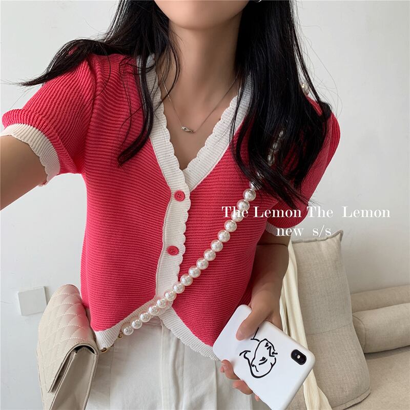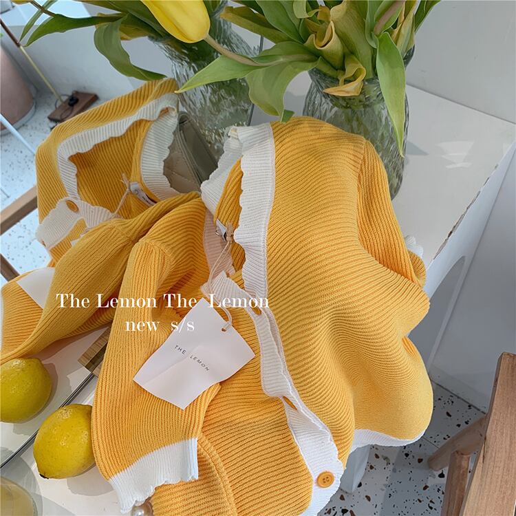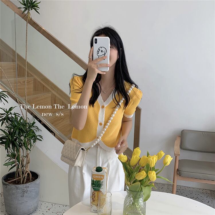 カラーセーター レディースサマースタイル薄手ストライプクロップトップ トップス 夏物 ビッグFスモールZ韓国45740602510