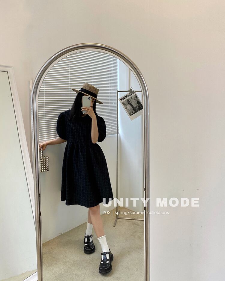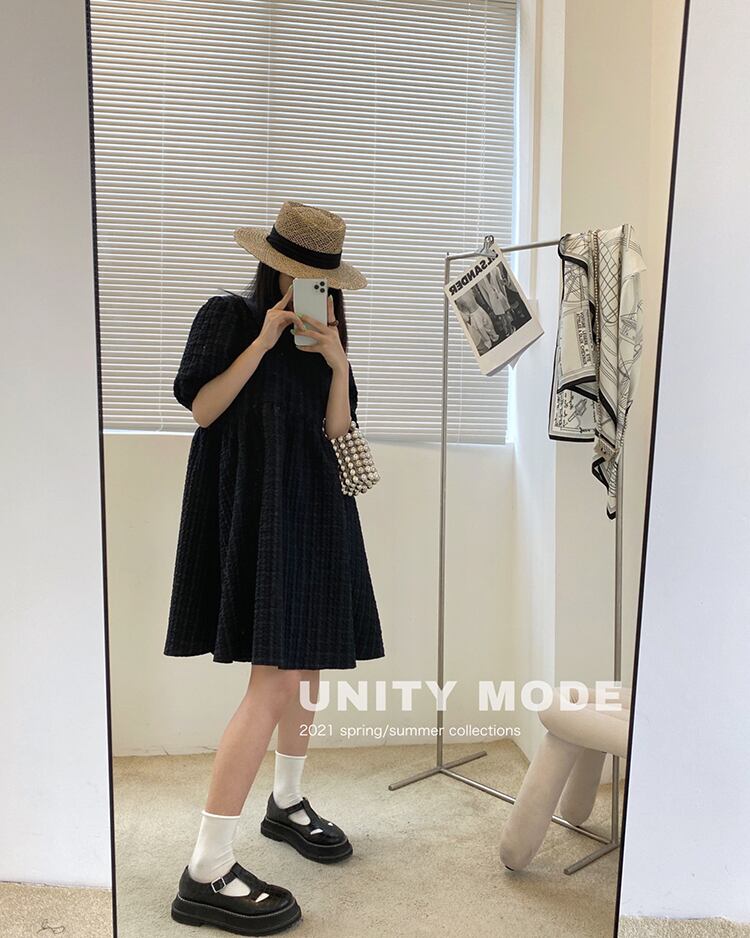 スリーブドレス サマーショートルーズ薄手ソリッド カラープリーツラウンドネックAラインスカート 夏物 Oネック ソリッドカラー ビッグFスモールZ韓国45518409916