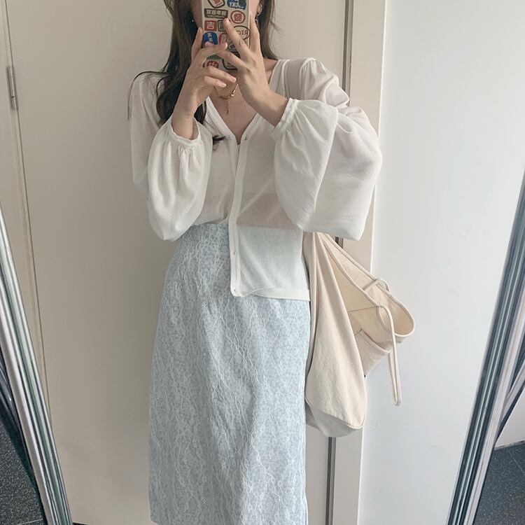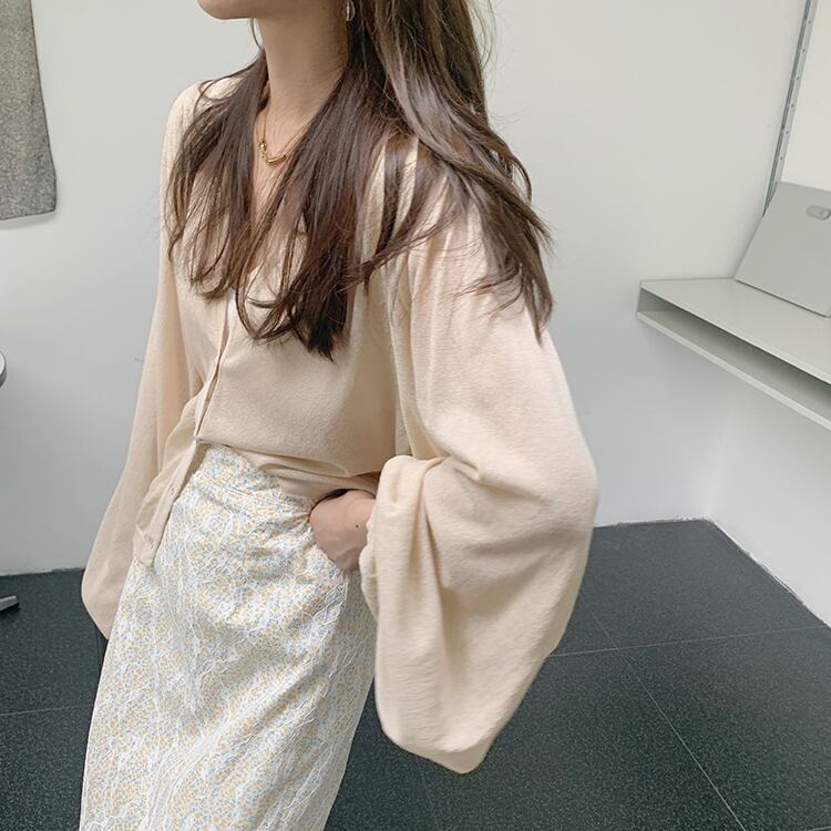 スリーブ薄手シャツ サマーソリッド カラールーズ長袖カーディガンジャケット ロング ランタンスリーブ 夏物 ソリッドカラー ビッグFスモールZ韓国25932239567