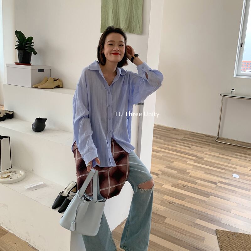 シャツ ルーズソリッド カラートップス レディース ロング ソリッドカラー ビッグFスモールZ韓国73837911619