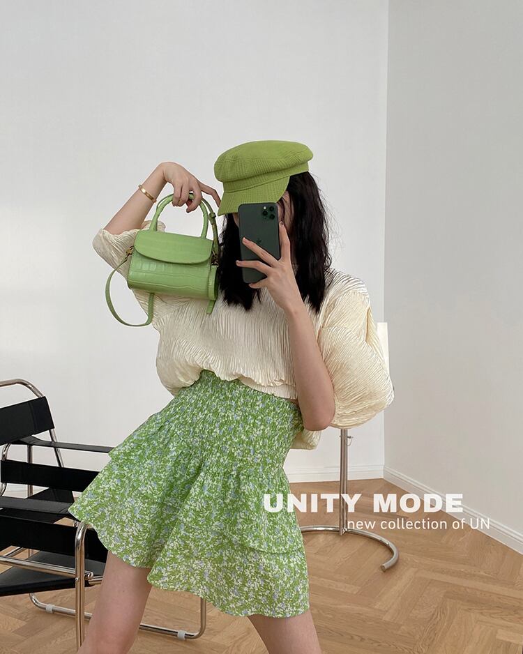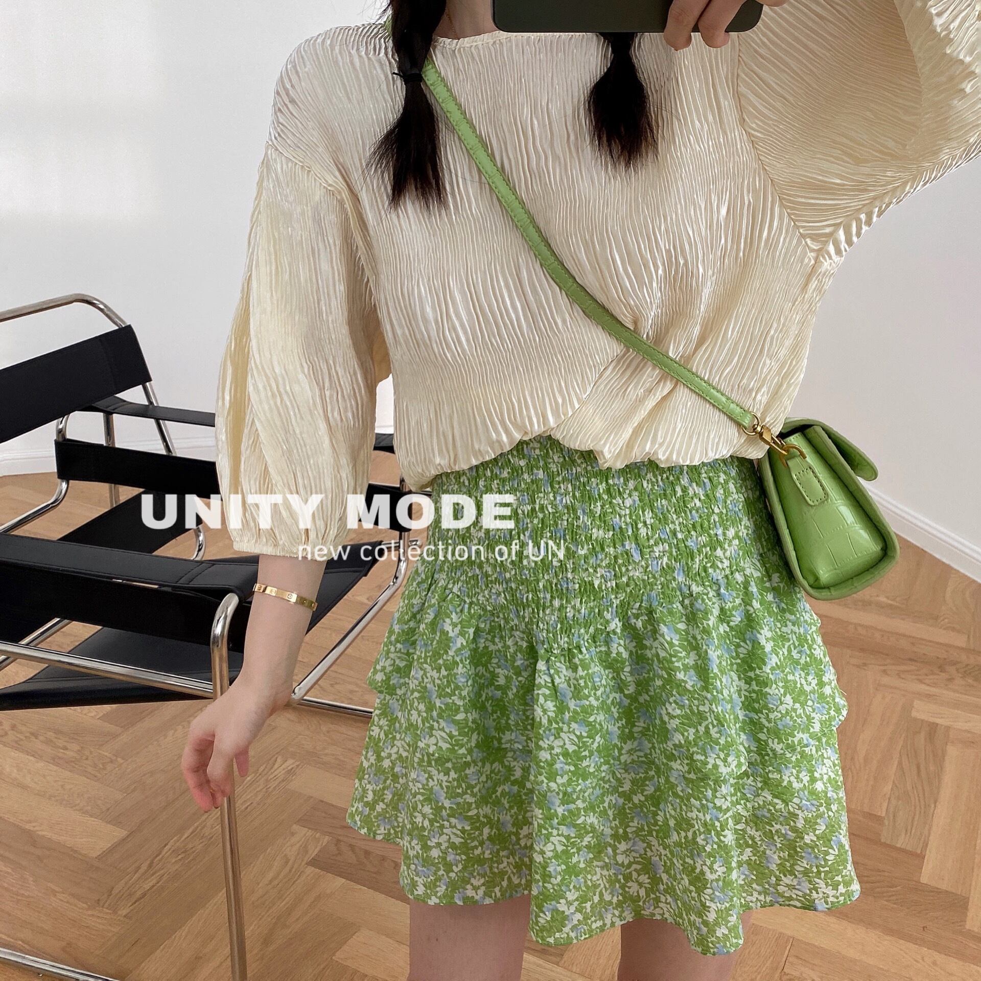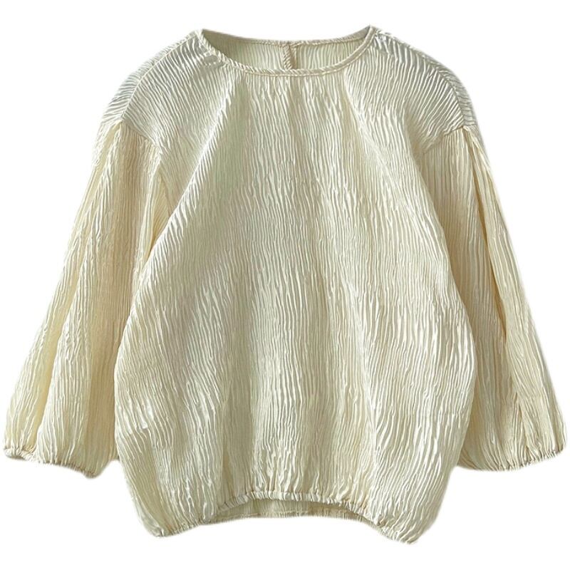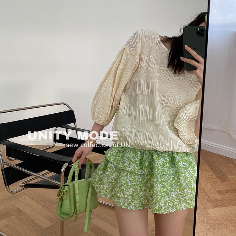 スリーブプリーツトップス サマールーズラウンドネックシャツ 夏物 Oネック ビッグFスモールZ韓国58417486925