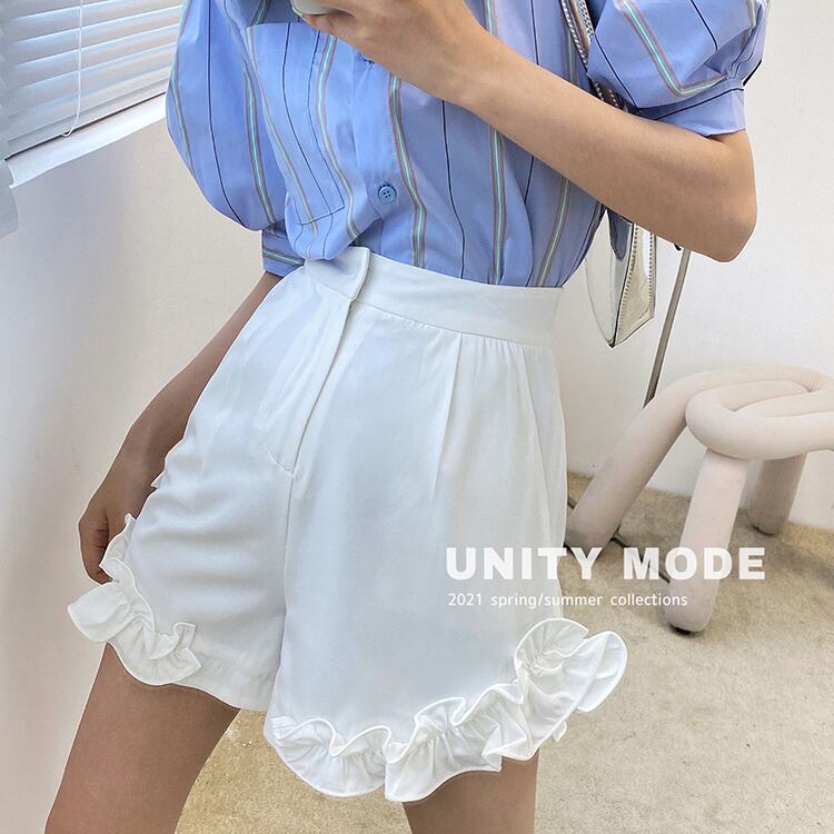 ショーツ サマーハイウェストウェストルーズAライン 夏物 ブルマー ワイドレッグ ワイドパンツ ビッグFスモールZ韓国38457041649