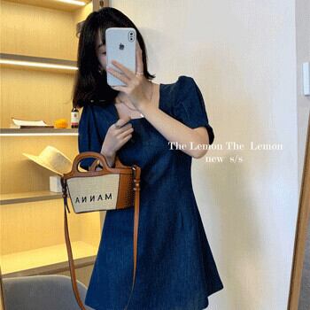 スカート 薄手スリーブドレス Aラインレディース スクウェア ビッグFスモールZ韓国99854788612
