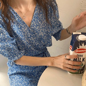 ワンピースレースフローラルドレス レディースサマーロングバンドウェストスリーブ 夏物 花柄 ビッグFスモールZ韓国86355935115