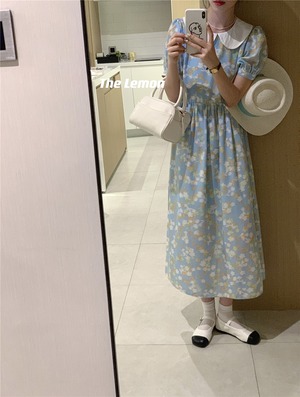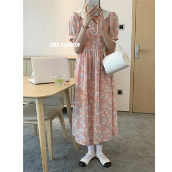 サマーカラーフローラルスカート ルーズ半袖スリーブドレス ロング ショート ハーフスリーブ 夏物 花柄 ビッグFスモールZ韓国39959774523
