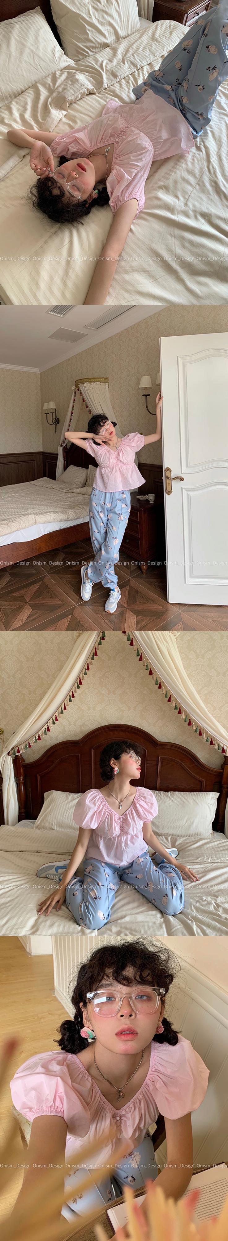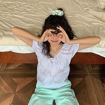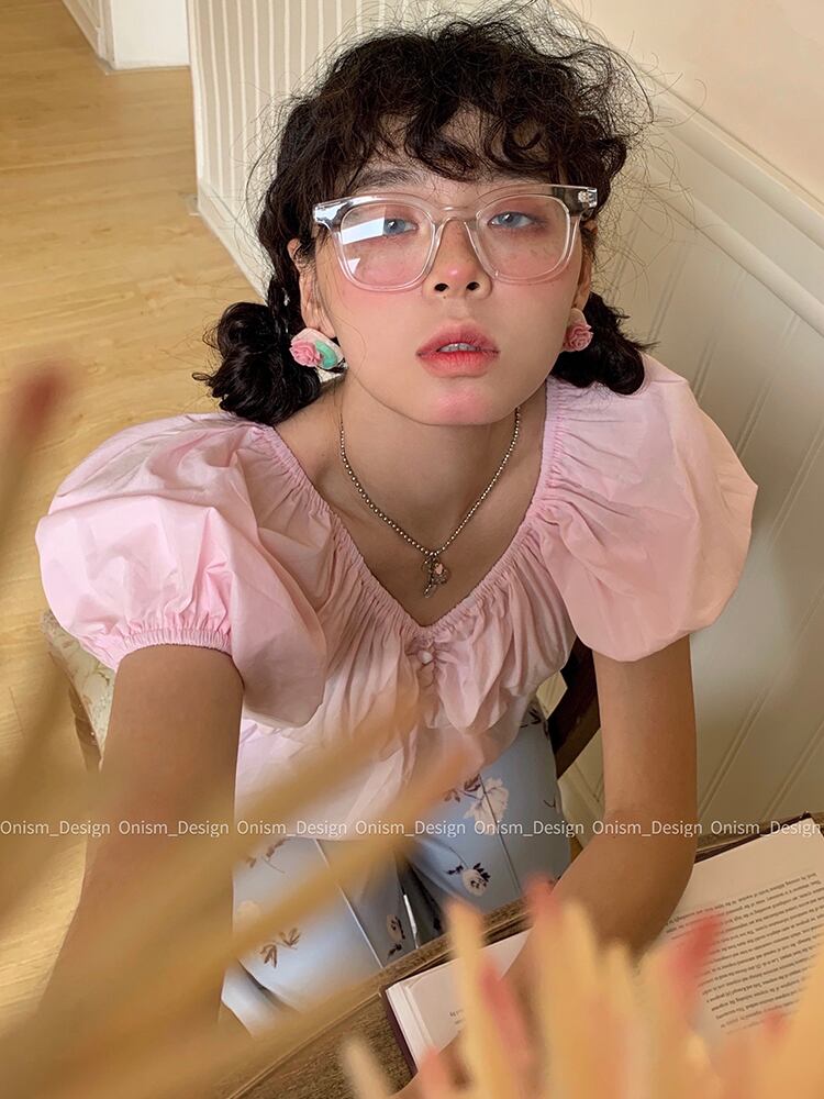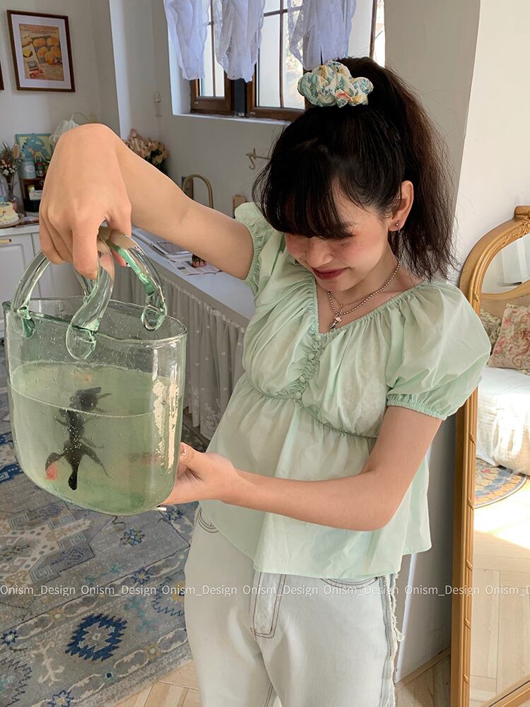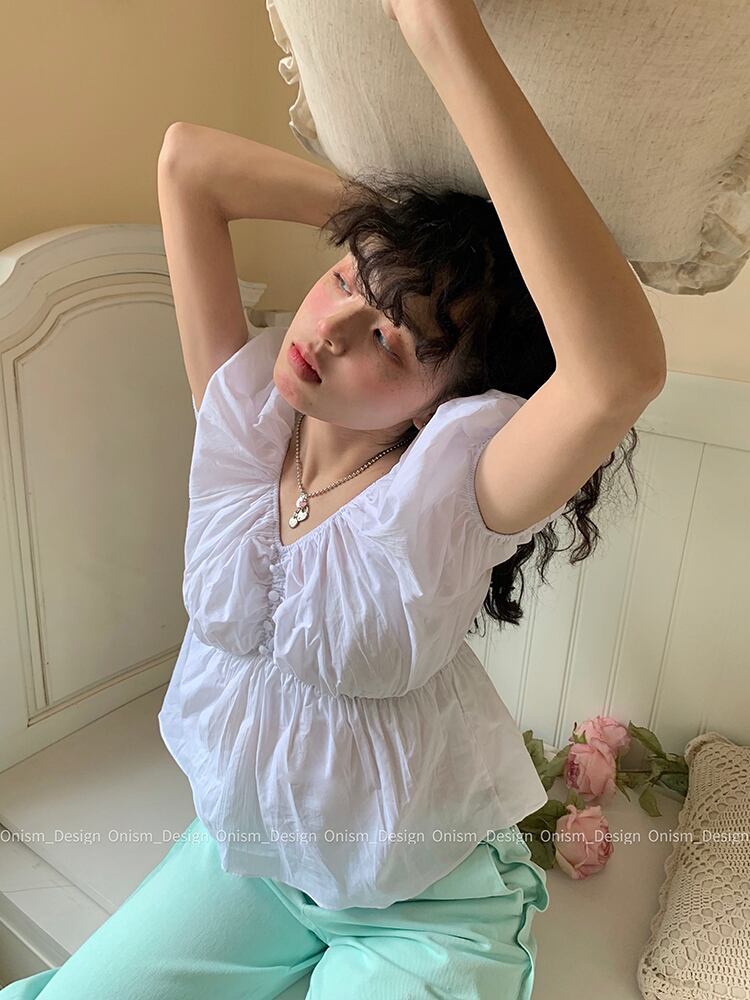 シャツ サマーVネックプルオーバー スリーブルーズ薄手プリーツ 夏物 ビッグFスモールZ韓国34731990143