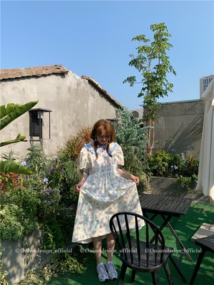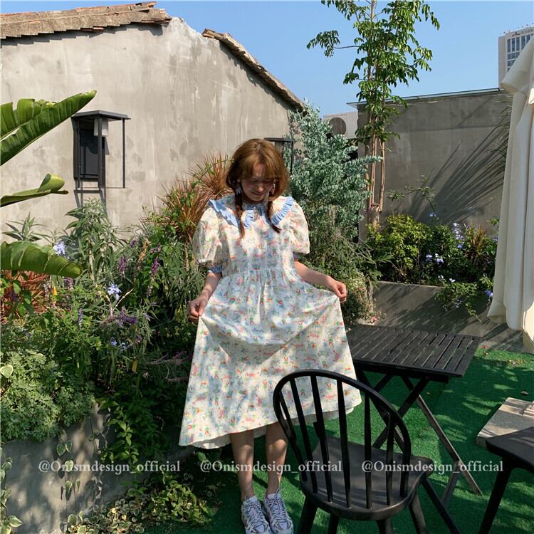 カラーフローラルドレス サマーロングルーズ薄手ウェスト 夏物 花柄 ステッチ ビッグFスモールZ韓国61976920592