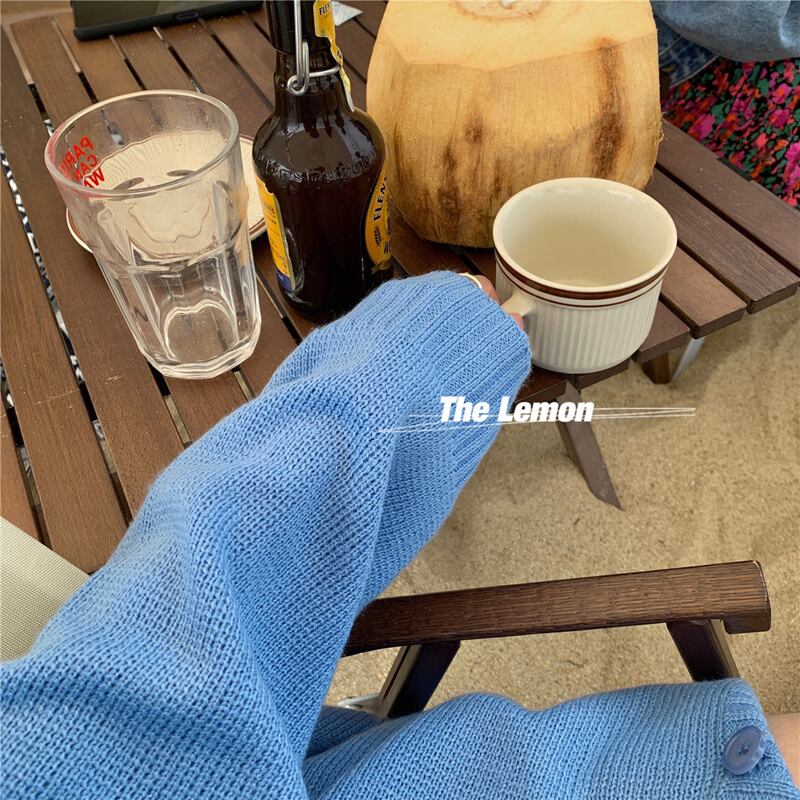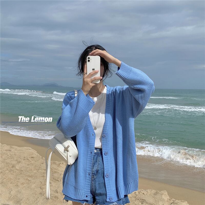 ブレストVネックカーディガンスプリングサマーニットジャケット トップス レディース 春物 夏物 ビッグFスモールZ韓国41402336140