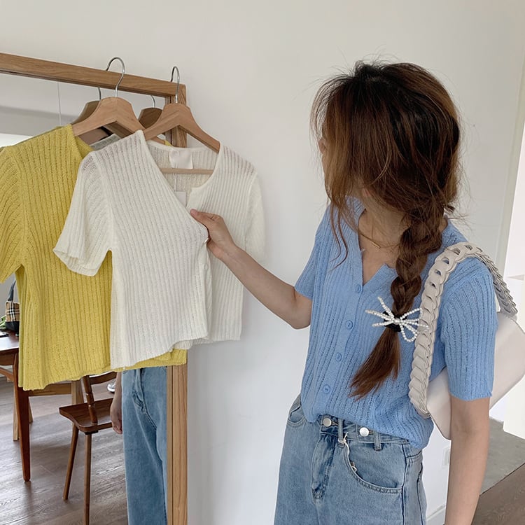 ニットショートカーディガンシャツ サマー薄手Tシャツ 夏物 シルク ビッグFスモールZ韓国50030819044