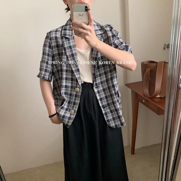 格子柄ジャケット サマーカジュアル薄手レッド 夏物 ビッグFスモールZ韓国24136756915
