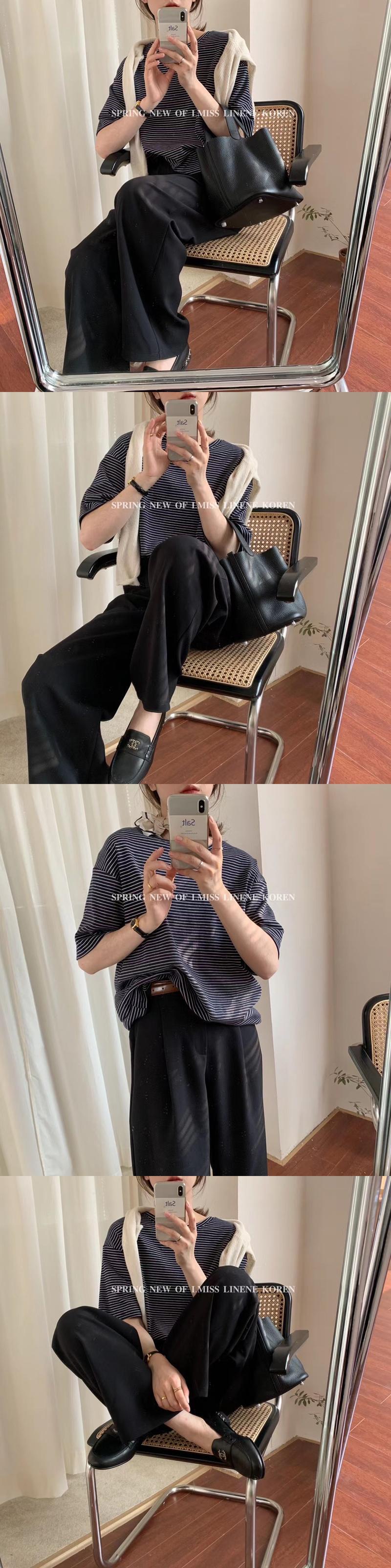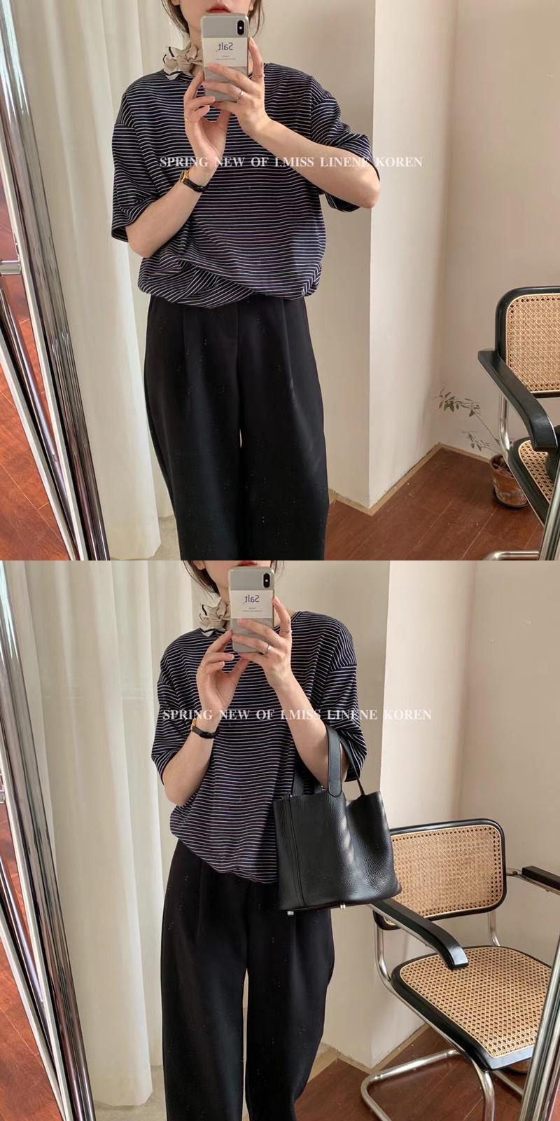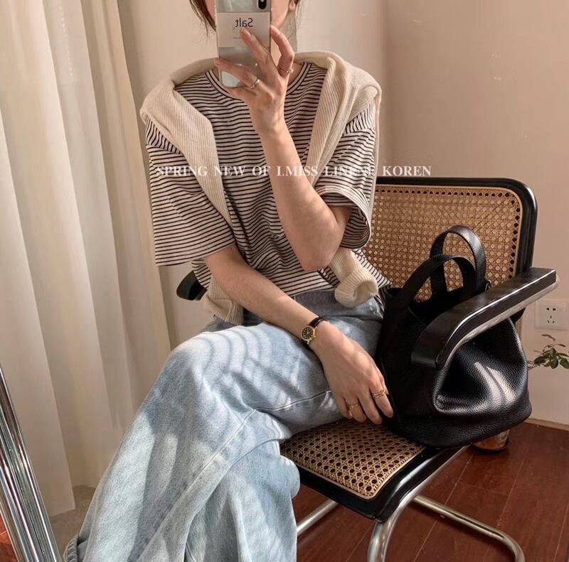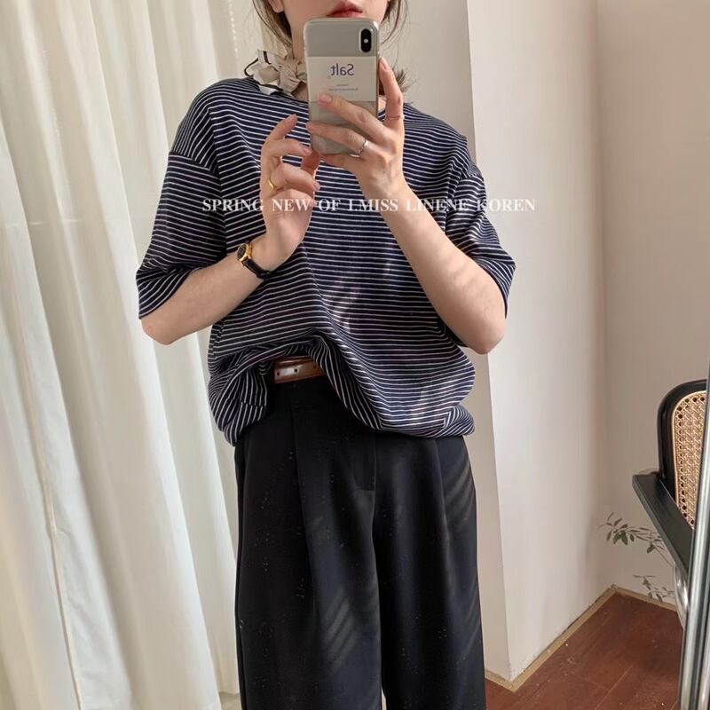 ストライプラウンドネックプルオーバー Tシャツ トップス スプリングサマーレディース 春物 夏物 Oネック ビッグFスモールZ韓国65843078956