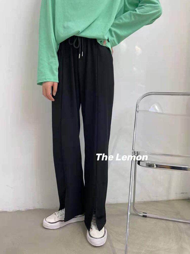 ロングサイドスリットカジュアルパンツ スプリングオータム薄手ハイウェスト 春物 秋物 ビッグFスモールZ韓国15568938960