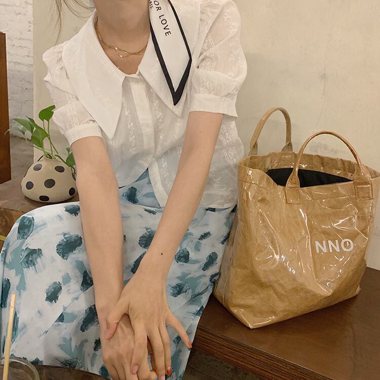 ホワイトトップス シャツ サマースタイルルーズ薄手スリーブ 夏物 ビッグFスモールZ韓国38379096622