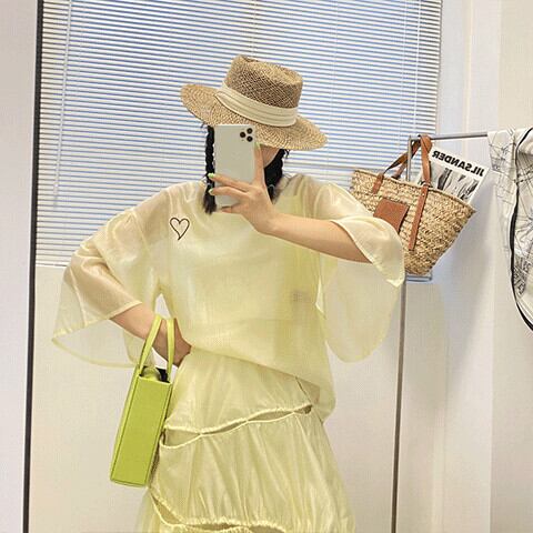ルーズシャツ レディースサマー薄手ラウンドネックスリーブ刺繍トップス 夏物 Oネック ビッグFスモールZ韓国33964134568