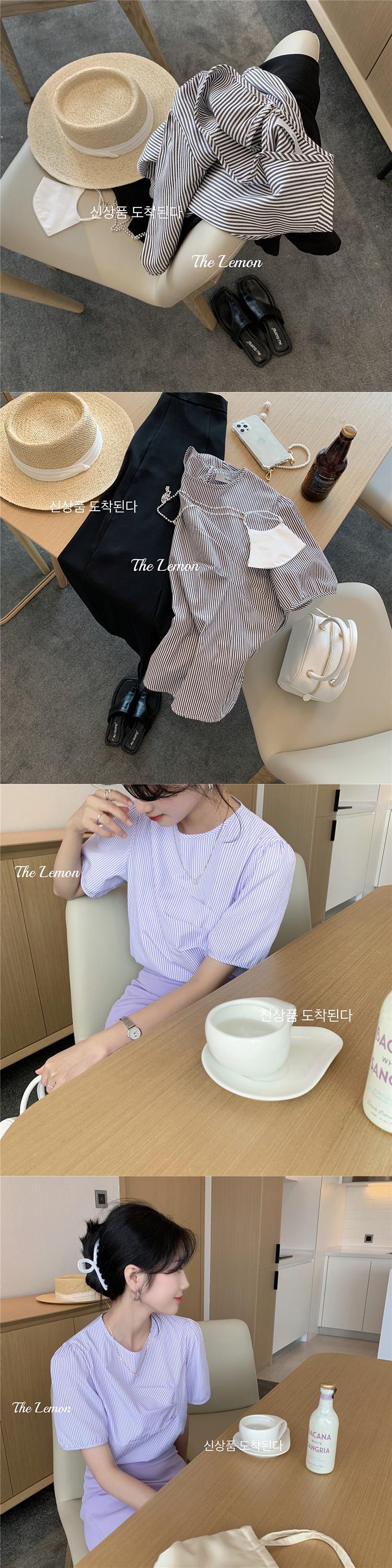 ストライプスリーブカラーブロックシャツ サマースリムラウンドネック半袖トップス ショート ハーフスリーブ 夏物 Oネック ビッグFスモールZ韓国30893952809