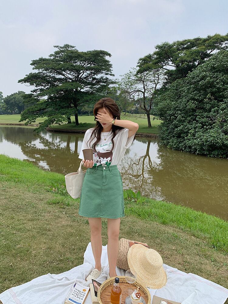 スカート サマーハイウェストウェストカジュアルAラインショート レッド 夏物 ピュア ビッグFスモールZ韓国3671186367