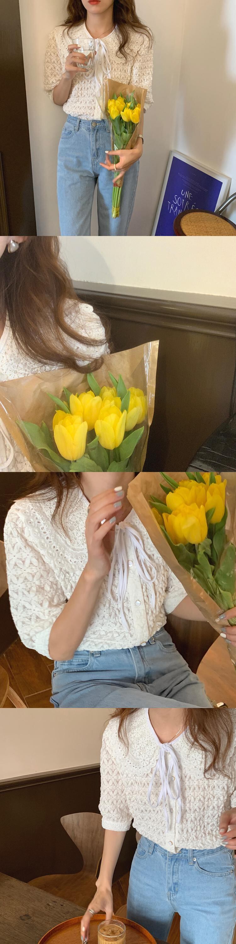 レーストップス レディースサマー薄手シャツ 夏物 レースアップ ビッグFスモールZ韓国41041487666