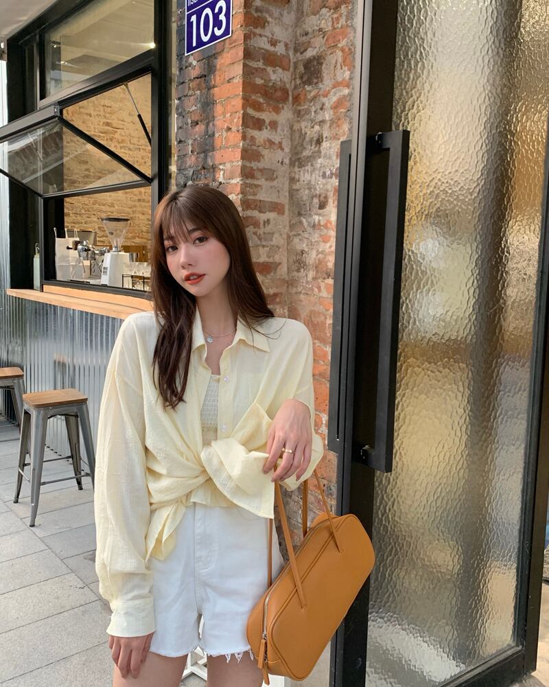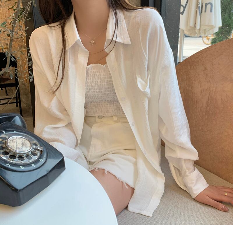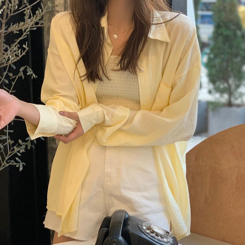 スリムルーズシャツ トップス レディース ロング ビッグFスモールZ韓国70122520584