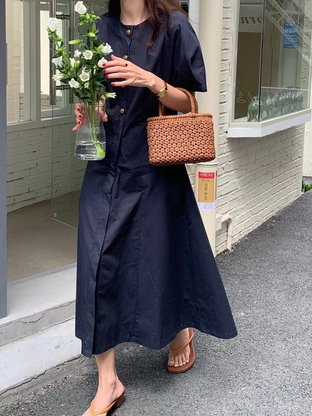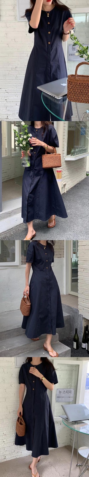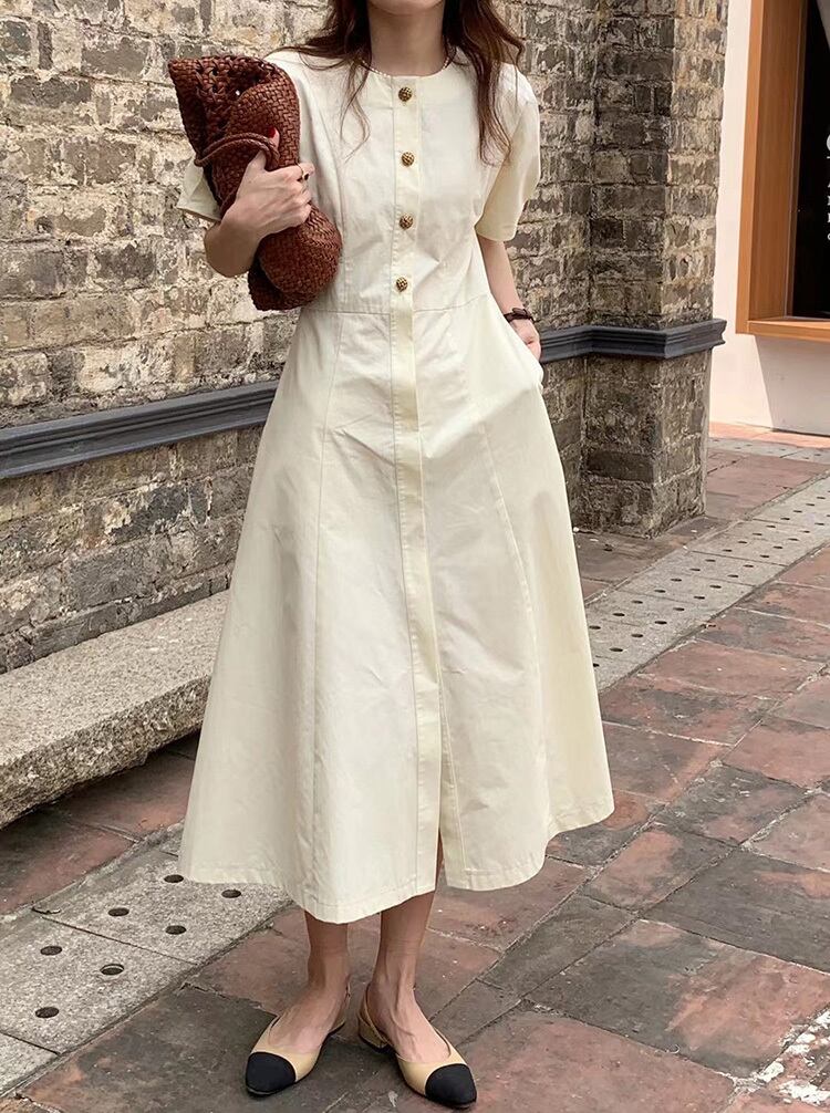 ドレス サマースリムウェスト薄手ラウンドネック半袖スリーブスカート ショート コットン ハーフスリーブ 夏物 Oネック ビッグFスモールZ韓国63861163605