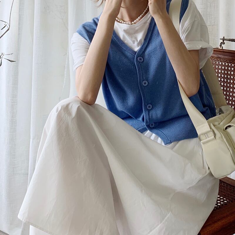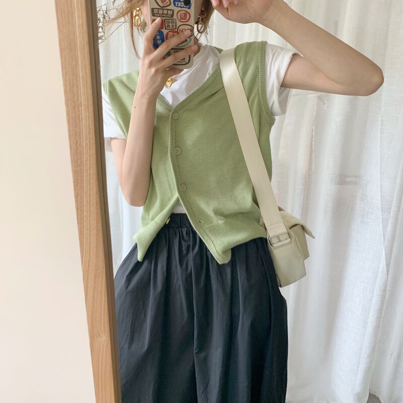Vネックカーディガンノースリーブニットトップス レディース ビッグFスモールZ韓国12868545909